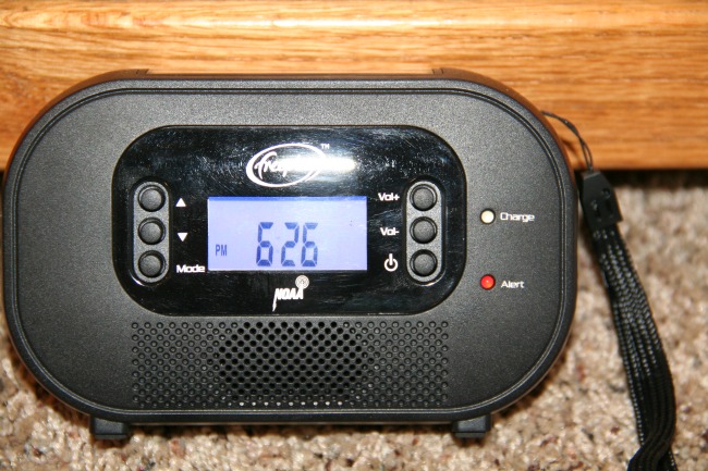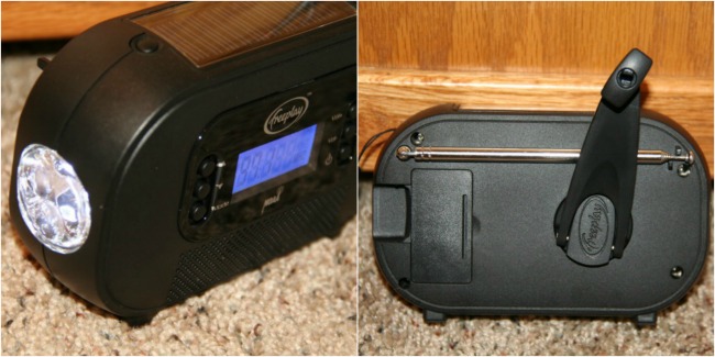 I am most concerned with how I can use the Encore Buddy in severe weather situations, especially if the power goes out, and the additional features of the Encore Buddy are what sets it apart from other radio/clock devices.  First, the Encore Buddy runs off of a rechargeable battery so there is no need for electrical power.  The battery can be charged in four different ways – (1) charge it from a wall outlet using an AC adaptor, (2) charge it from a computer using the USB connector that comes with it, (3) charge it from the sun using the built-in solar panel, or (4) charge it using the hand crank on the back.  When the battery is fully charged, it should provide six hours of radio play at normal volume.  In addition, the Encore Buddy has a Weather Alert function that can be turned on to automatically broadcast NOAA emergency weather alerts for your area from seven different NOAA Weather Band stations.  The Encore Buddy has a (really bright) LED flashlight with three bulbs, which is great for seeing in the dark.  Finally, there is even a place to plug in your cell phone or other small electronic device for charging from the Encore Buddy’s battery or by the hand crank (and there are different plugs included for different devices).  That is an important feature to me, as a couple of years ago we were snowed in during a blizzard without power for a couple of days.  The only way we could stay in touch with family and the only news we could get was through our phones so we needed to keep them charged.
